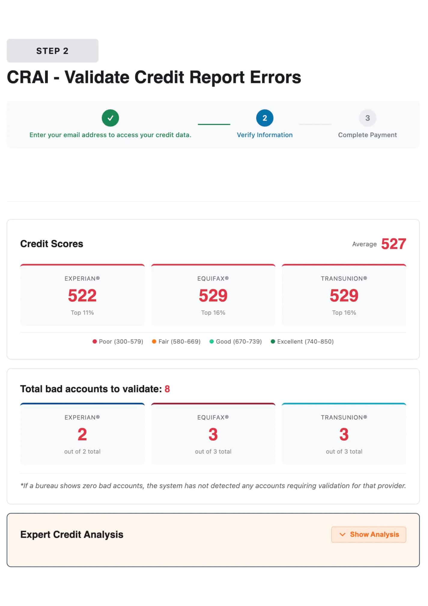 Check your Expert Credit Analysis and send your Validation Letter to all 3 major bureaus.